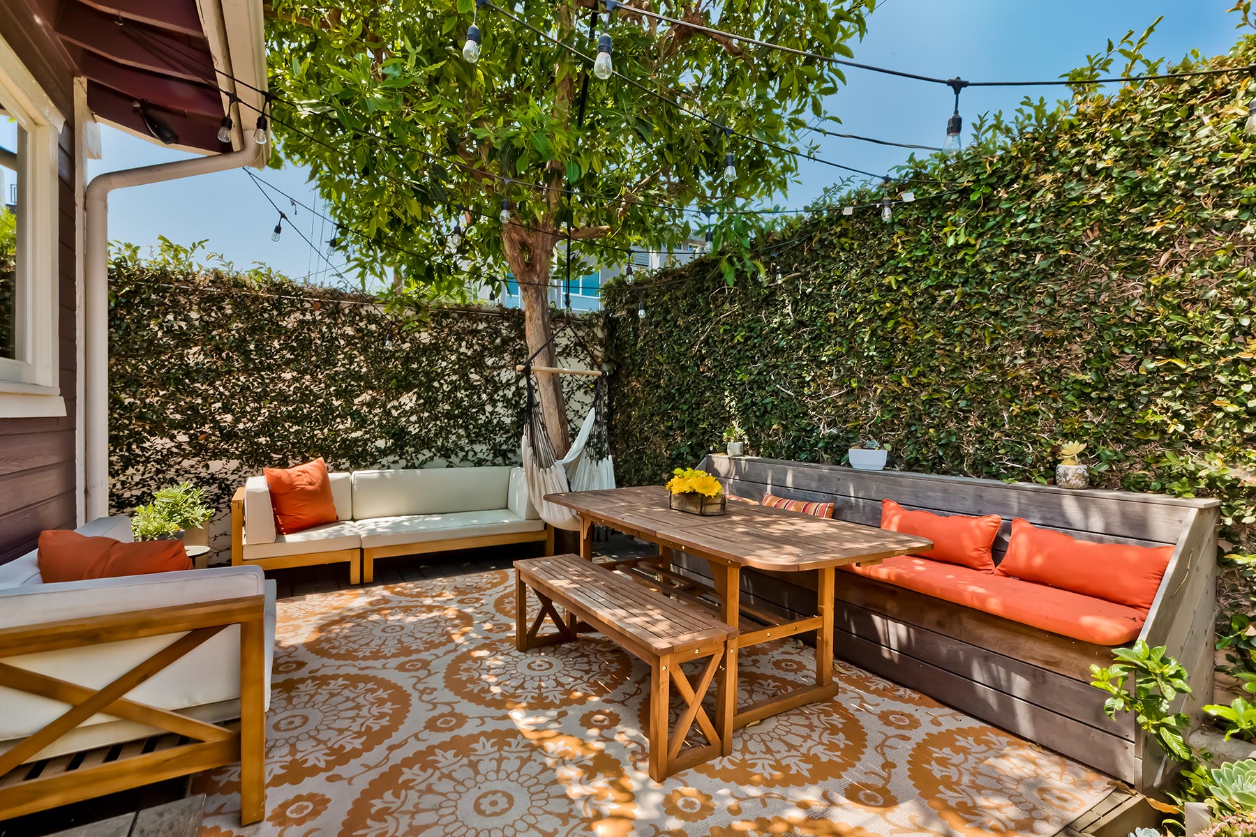 One of only four homes sited in this unique double lot enclave, this detached, 3 bedroom 2 bath California Craftsman style bungalow provides a respite of calm only moments from the shops and restaurants of West Hollywood. Built in 2000, this gated compound offers its fortunate owners the experience of single family home living, complete with covered front porch, private garage and an enclosed yard, but with the safety, security and convenience of a small complex. The open-spaced living and dining areas, boasting high ceilings and a fireplace, flow seamlessly to the lovely kitchen and private yard. The lush and smartly landscaped garden is a hidden zen retreat, perfect for relaxing, entertaining or working from home. The spacious master suite features French doors, a wonderful bathroom with dual vanity, separate tub and shower and a generously-sized walk-in closet. There are two additional bedrooms, each with walk-in closets. The attached 2-car finished garage has been upgraded with recessed lighting and custom shelves and is currently being used as the game room of the dreams of even your wildest inner child, but would also function perfectly as a home gym or art studio. Newer, top of the line energy-efficient HVAC system and ducting. No shared walls and low HOA dues make this home a rare gem for those in search of a magical oasis in the heart of the vibrant city.